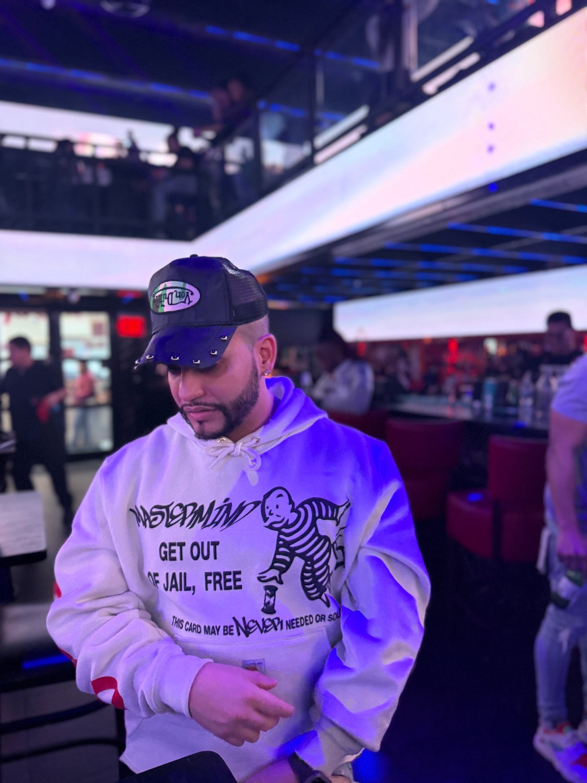 Process of making: 90% 3D puff ink screen printing, modifying the hoodie by trimming and stitching to size (crop fit).